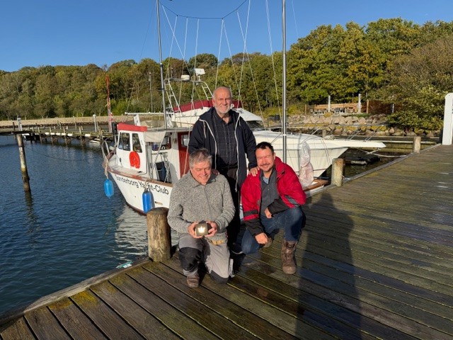 Sejlerne takkede besætning fra venstre Lars, Hans og Sven. Sejlerne havde lavet en indsamling til besætningen, som fik et fint gavekort til Sønderborg Handel. Flemming fik også et som tak for arrangering af mad og drikke om onsdagen.